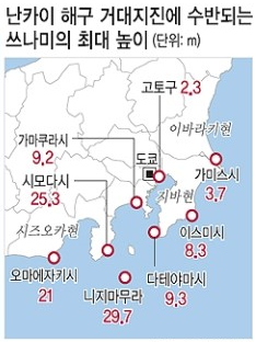 난카이 대지진으로 인한 우리나라 피해 예상 위치